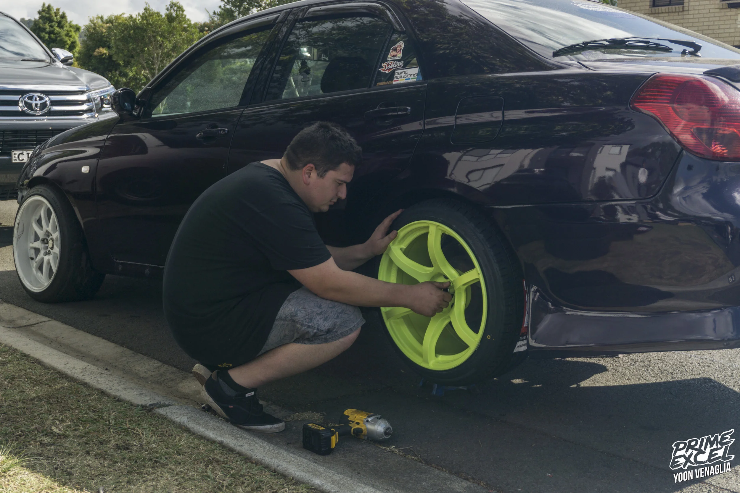 Despite being surrounded by Nissan S-Chassis' there was only one SR20 and it was sitting on a stand in the garage, the engine of choice for the boys was the Toyota 1JZ. The particular one below in Jye's car making between 330-350kw (~440-470HP) depending on the boost setting. Most of the cars run Origin Lab kits, Jye's had the additional bootleg wing which was found in the back of the garage some time ago. It sits on 17" Enkei RPF1's with a 5 stud swap all round as opposed to Danijel's car still rocking the 4 stud.